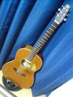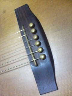 しかし、元々がエレクトリック用のP.U.なので、アコギ用のブロンズ弦を張ると各弦のバランスがおかしくなり、泣く泣くエレクトリック用のスティール弦(3弦が巻弦のもの)を選択・使用しています。