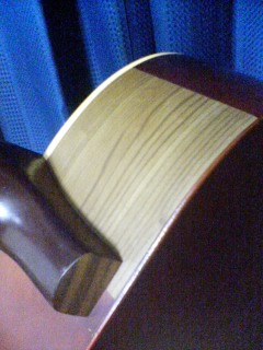 でも、 ギター用の木材の産地、カナダ製のギターということでトップ材にシダーの単板が使用されています。