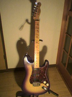ネックは高校時代に買ったFender/JのTelecasterの物。材質はメイプル。もう16年使ってます(笑)指板はボロボロ。