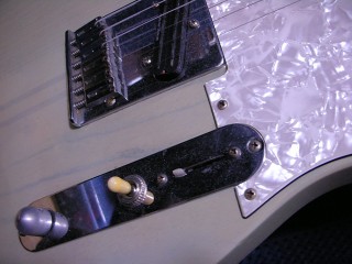 定番のCRL製のPUセレクターSWは、この薄いボディに搭載できませんでした。 ので、ヴォリュームポットの位置にトグルSWを。