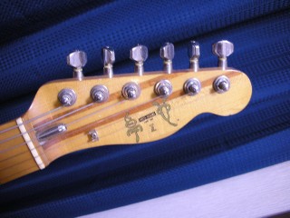 ペグはシャーラータイプ。フェンダー70年台を意識した上締めロッドは加工が難しく、苦労した記憶があります。